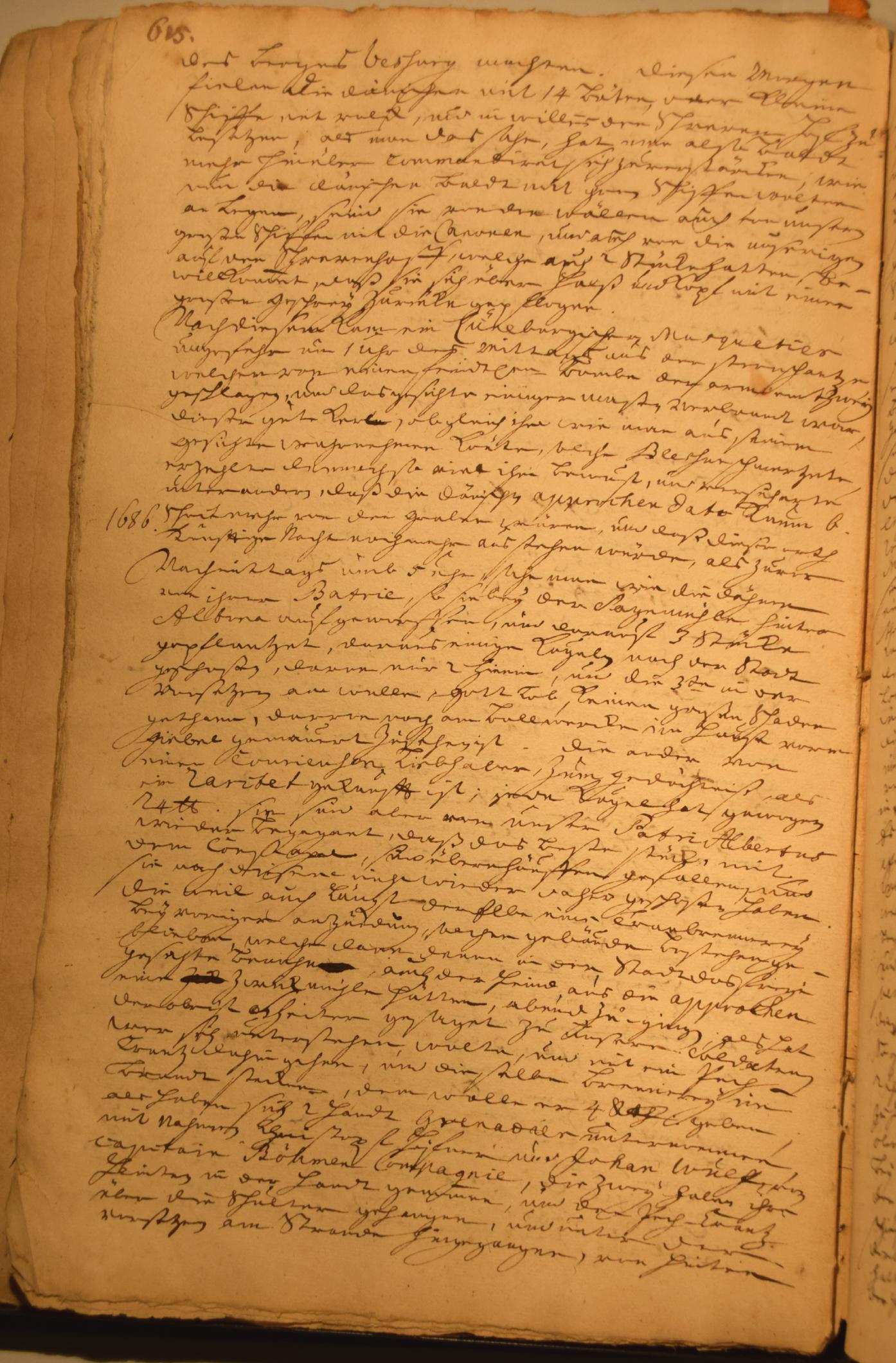 [611] Nachmittags umb 5 uhr, sahe man wie die dähnen von ihrer Batrie, so sie bey der Sagemühle hinter Altona aufgeworffen, und darauf 3 Stücke gepflantzet, daraus einige kugeln nach der Stadt geschoßen, davon nur 2 hinein, und die 3te in der Vorsetzen am walle, Gott Lob, keinen großen Schaden gethan, darvon noch am Bollwercke im hauße vorm Giebel gemäuert zusehen ist. Die ander von einen Courieusen Liebhaber, zum Gedächtniß, als ein Raritet gekaufft ist; jede kugel hat gewogen 24 (Pfund). Sie sind aber von unser Batri Albertus wieder Begegnet, daß das Beste stück, mit dem Constapel, sind übernhäuffen gefallen, und sie nach diesem nicht wieder daher geschoßen haben. Die weil auch Längst der Elbe eine Tranbrennerey Bey voriger anzündung, solchen gebäude Bestehen geblieben, welche dann denen in der Stadt das freye Gesichte Benahm, auch der Feind aus die approchen eine zick zwickmühle hätten, ab und zu- gingen; als hat der obrist Scheiter gesaget zu unsern Soldaten, wer sich unterstehen wolte, und mit ein Pech-Crantz dahin gehen, und dieselbe Brennerey im Brandt stecken, dem wolle er 4 R(eichstaler) geben; als haben sich 2 Handt Grenadier unternommen, mit Nahmen Christopf Höfner und Johan Wulff, von Capitain Böhmen Compagnie, die zwey haben ihre Flinten in der Handt genom(m)en, und den Pech-Crantz über die Schulter gehangen, und unter der vorsetzen am Strande hingegangen, von hinten